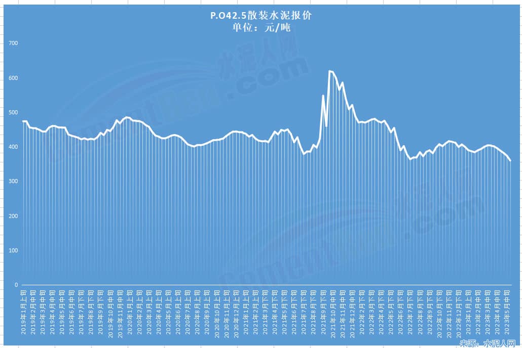流通領域水泥報價:大跌258.6元/噸,跌幅41.78%