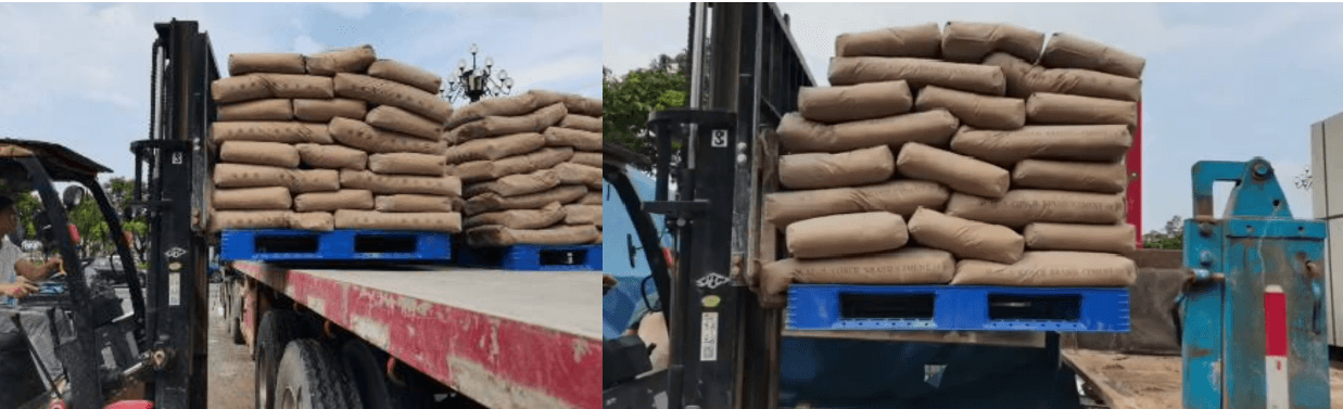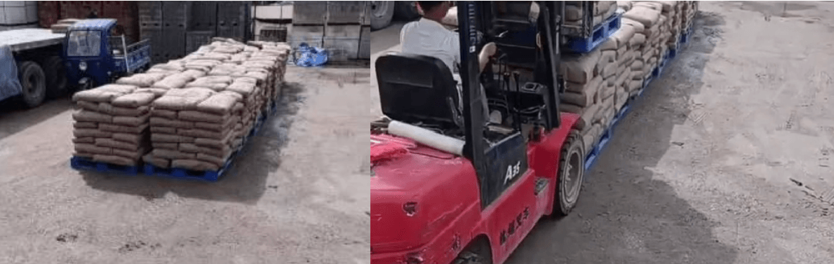當地經銷商對水泥人網表示:托盤水泥可以直接用叉車裝卸,減少經銷商在裝卸時的人工成本,每一個托盤可裝2~3噸。一車水泥傳統人工卸車需要90分鐘左右,叉車卸托盤15分鐘不到就可卸完。
