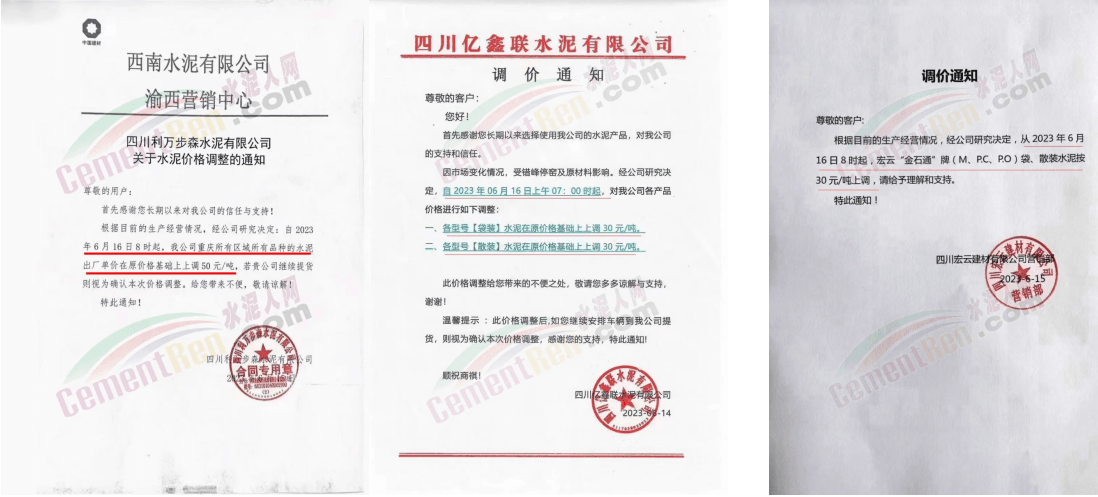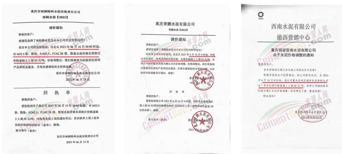 重慶區域南桐特種水泥、青鵬水泥、銅梁西南水泥、利萬步森水泥、億鑫聯水泥、宏云建材等主要品牌企業復價上調30~50元/噸。
