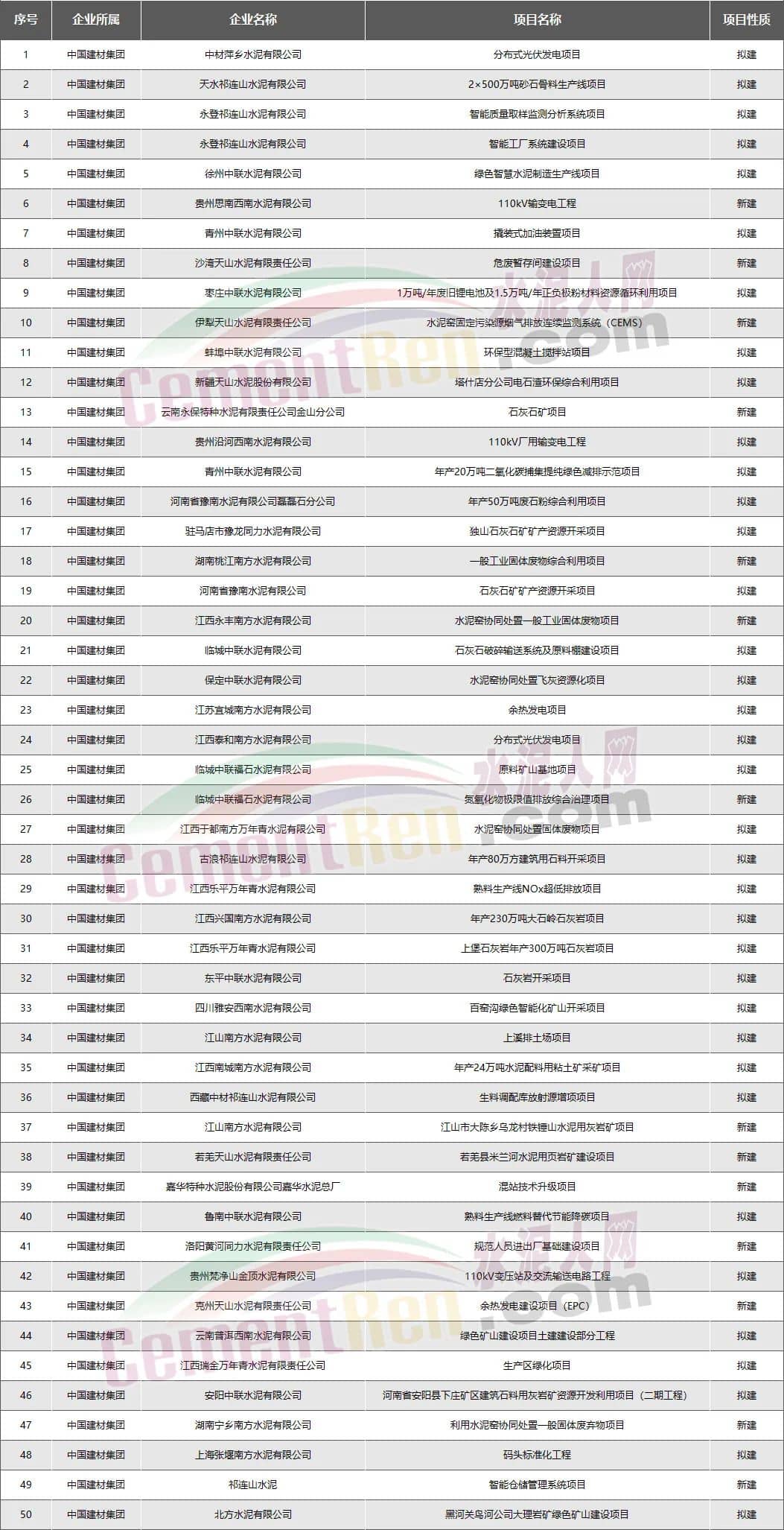 據(jù)水泥人網(wǎng)不完全統(tǒng)計,2023年下半年以來,中建材集團、海螺水泥、華新水泥、華潤水泥、金隅集團、紅獅控股集團、山水水泥、臺泥水泥旗下共有304個新建擬建項目,其中光伏、骨料、混凝土、水泥窯協(xié)同處置、智能化相關項目居多。