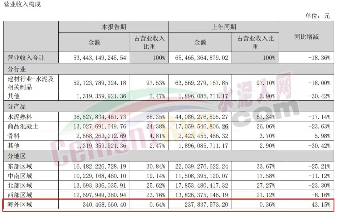 除海螺水泥外,其他水泥龍頭也在持續加快海外市場擴張,以尋求更廣闊的增長空間。今年上半年,華新水泥、西部水泥、天山股份等水泥企業海外營業收入同比去年均有所增長。
