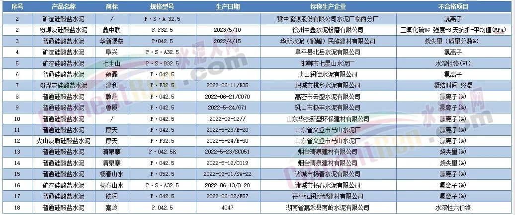 5月12日河北省市場監管局通報,標稱生產企業為唐山豐潤區唐山潤德水泥有限公司生產的“碩磊”牌普通硅酸鹽水泥P.O42.5一個批次質量不合格,不合格項目氯離子。