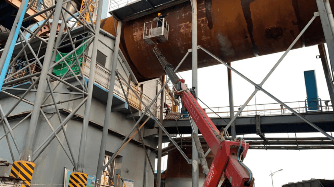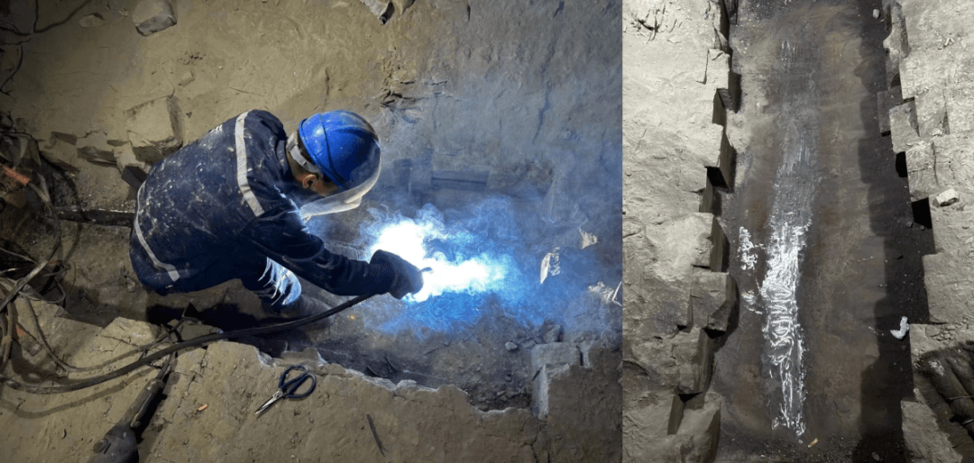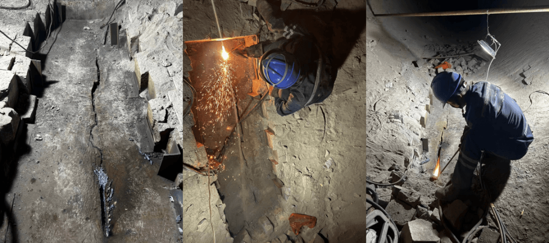 圖:回轉(zhuǎn)窯筒體裂紋搶修中
