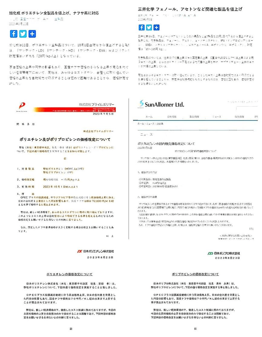 普瑞曼聚合物株式會社:自10月1日起聚乙烯(HDPE,LLDPE)和聚丙烯(PP)產(chǎn)品調(diào)漲15日元/kg以上。