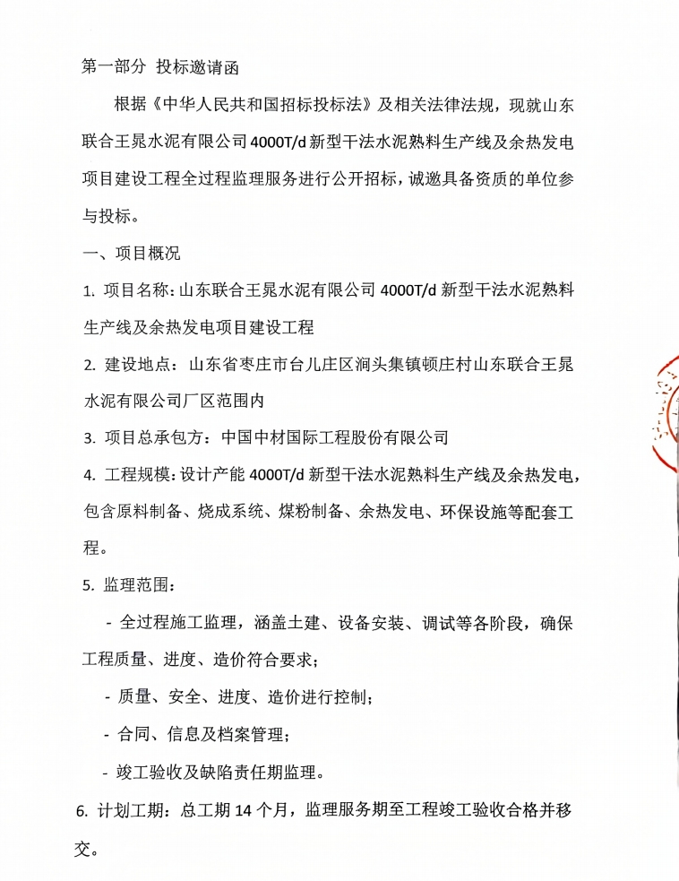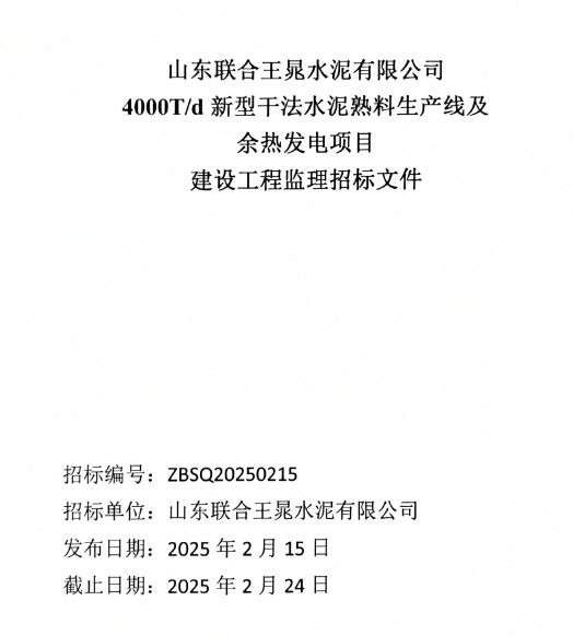 聯(lián)合王晁水泥4000t/d水泥生產(chǎn)線及余熱發(fā)電項(xiàng)目